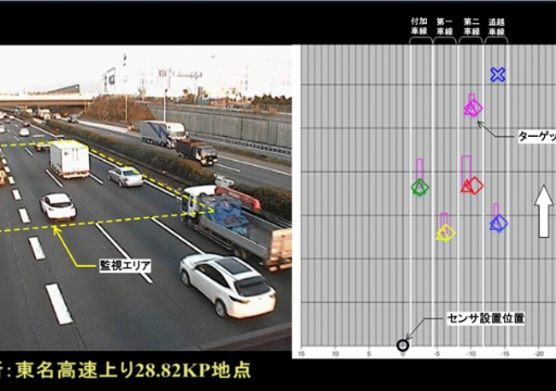 - 1台のセンサーで複数の車両について個々の車両速度を高精度に計測できることで、速度超過や低速の車両の検出、逆走車の検出など、突発事象の検知等が可能です。