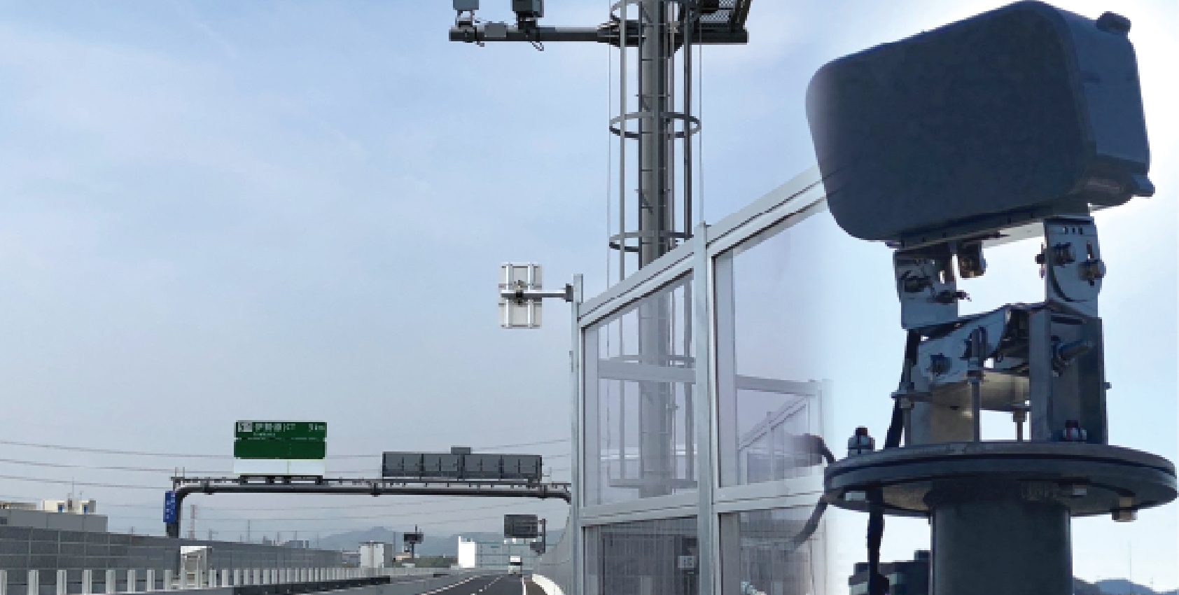 ミリ波の電波を使用し、走行する車両の台数や平均速度・占有率、突発事象を検知し、中央局設備へ出力することができる交通監視システム。迅速・正確に交通状況を把握することで、道路管理者による適切な事故防止対応・ドライバーへの情報提供を行うことができ、安全で円滑な交通流を支えます。