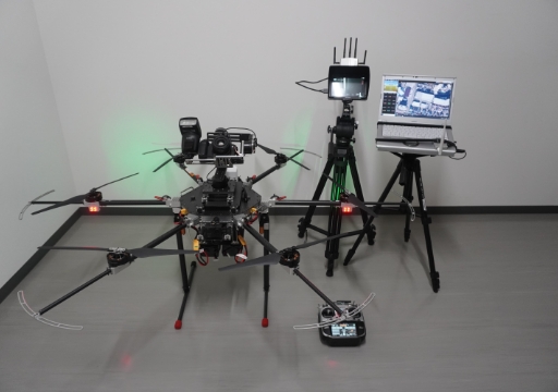 - 撮影した画像は、FPVモニタ(機体に取り付けたカメラからの映像を無線で伝送してディスプレイで確認するシステム)で確認することができます。