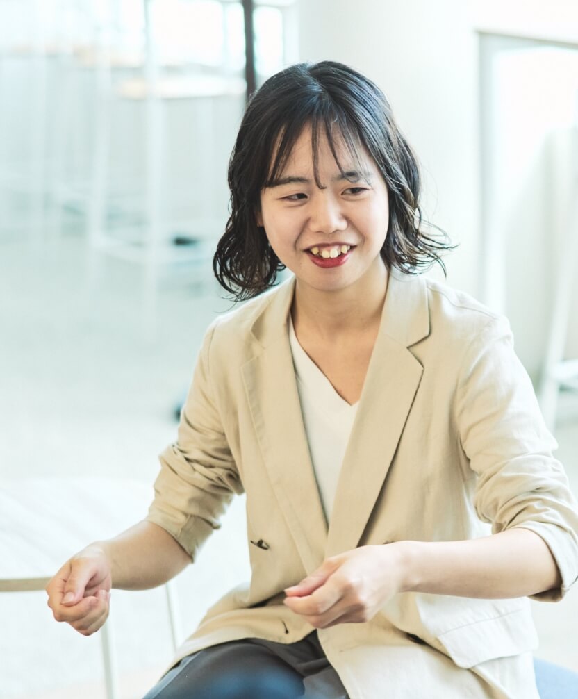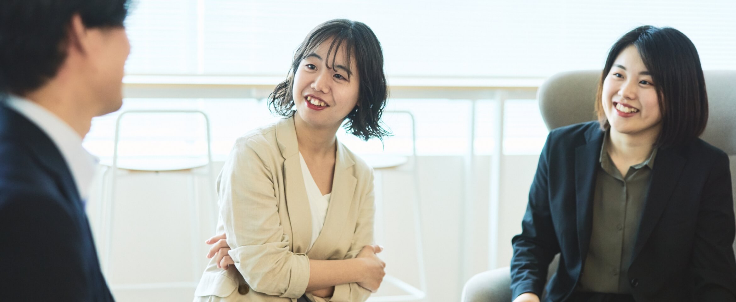 - 私は静かな人が多いのかなって思ってた。だけど、入社してみたら喋るのが好きな人が多くて、考え方も柔軟だし雰囲気も柔らかくて。「きちんと頑張らなきゃ」と身構えていたら、思いがけず肩の力が抜けて、「もっとリラックスしていいんだよ」と皆さんから背中を押してもらえたような心地でした。それと、年間の休日日数が多い!募集要項に「休日は130日以上取得できます」と書いてあって本当かなって思っていたけど、その通りでした。